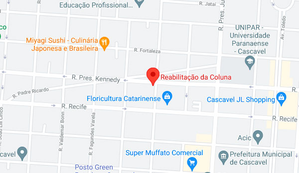 A Reabilitação da Coluna está localizada a duas quadras da UNIPAR, no cruzamento das Ruas Flamboyant e Presidente Kennedy.